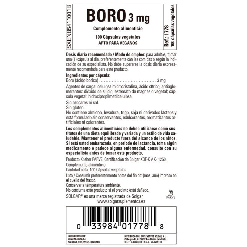 SOLGAR Boro 3 mg (100 Capsulas Vegetales)