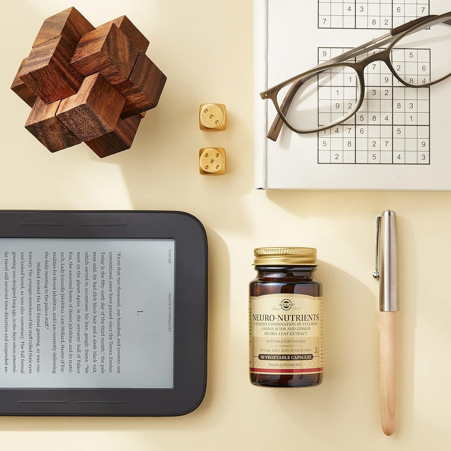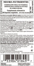 Solgar Neuro Nutrientes es una combinación exclusiva de vitaminas, aminoácidos y extracto de hoja de ginkgo biloba para el cuidado psicológico y del sistema nervioso. Contribuye a la función psicológica normal y al funcionamiento normal del sistema nervioso.