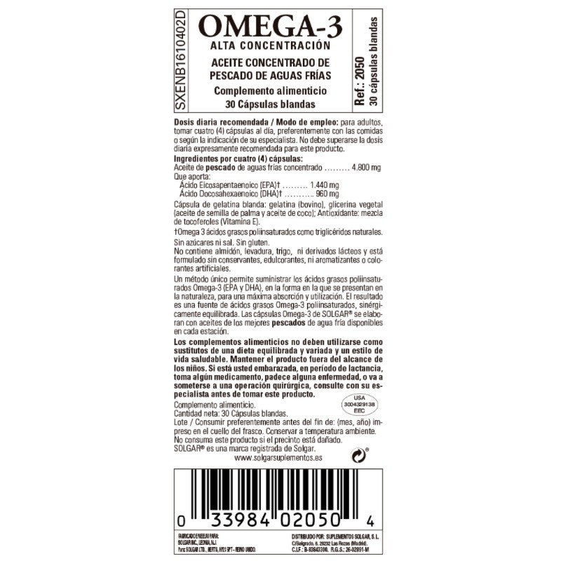 SOLGAR Omega-3 Alta Concentración 30 Cápsulas Blandas