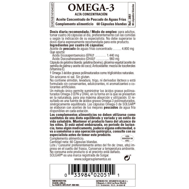 SOLGAR Omega-3 Alta Concentración 60 Cápsulas Blandas