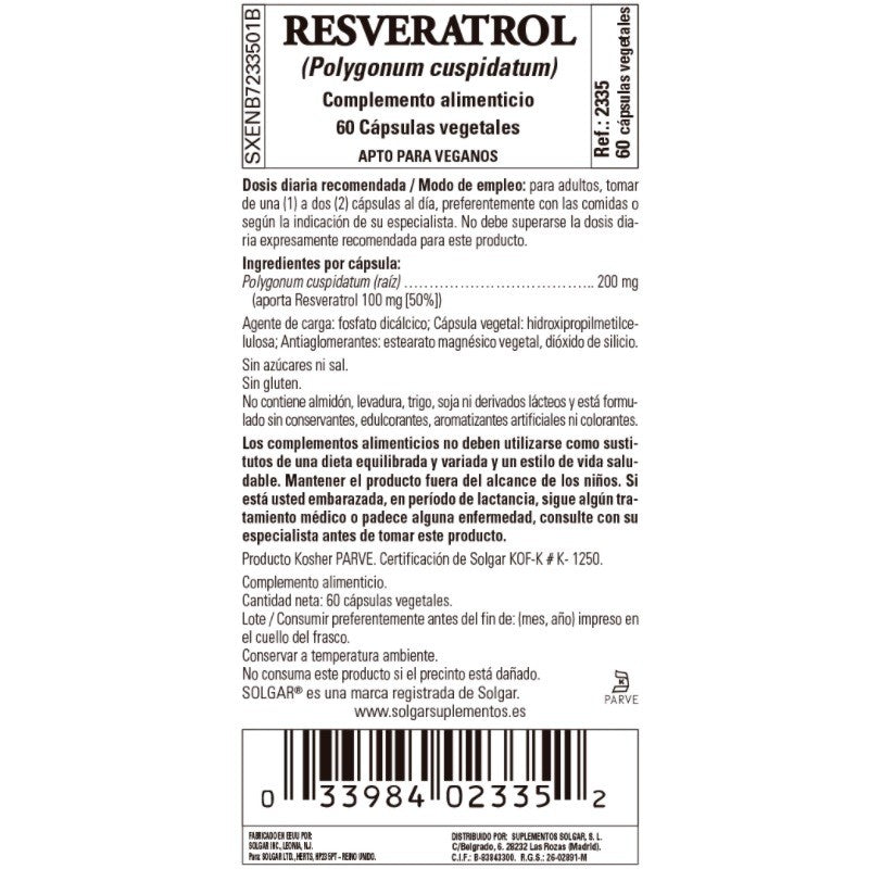 SOLGAR Resveratrol 60 Cápsulas Vegetales