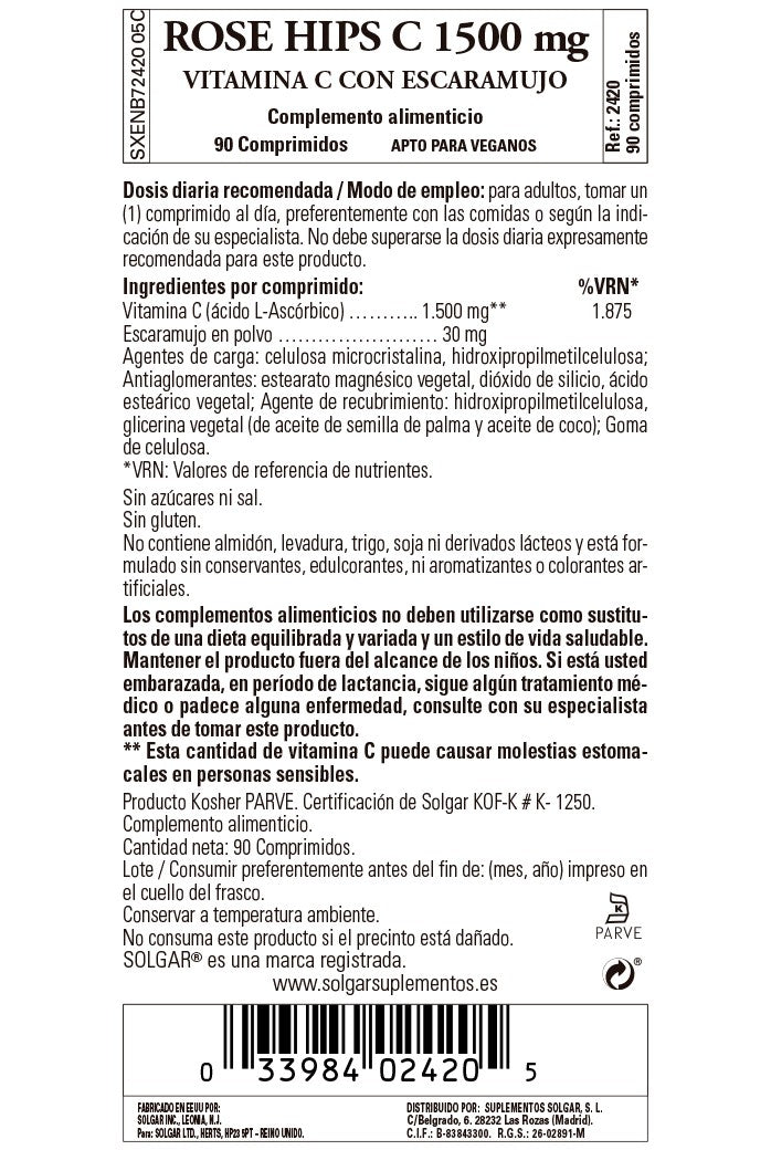 - Complemento alimenticio con 1500mg de vitamina C y Escaramujo.
