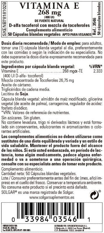 Solgar Vitamina E 400 Ui 268 Mg 50 Vcaps