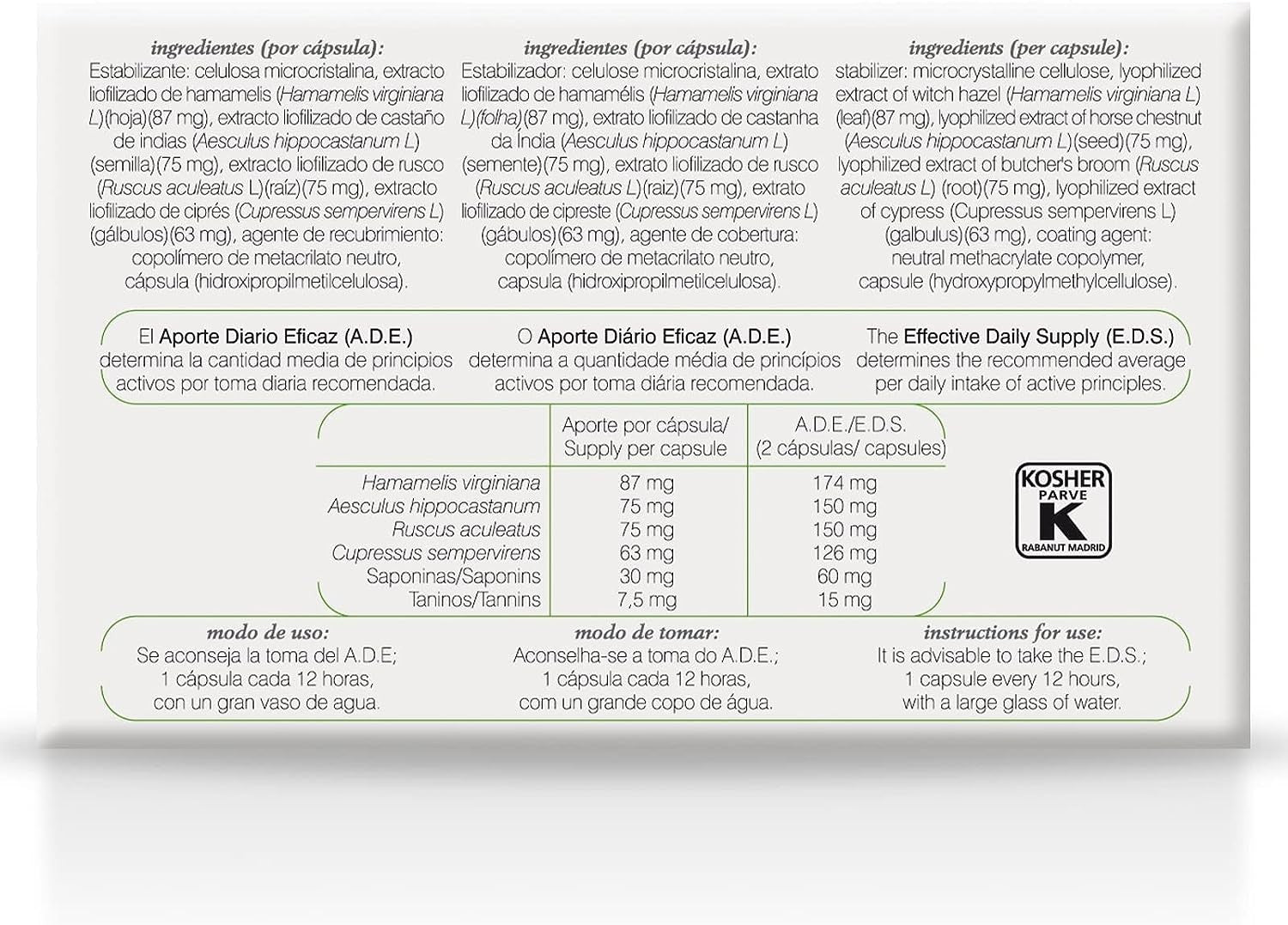 Complemento alimenticio de origen natural que ayuda a aliviar los síntomas de las piernas cansadas.