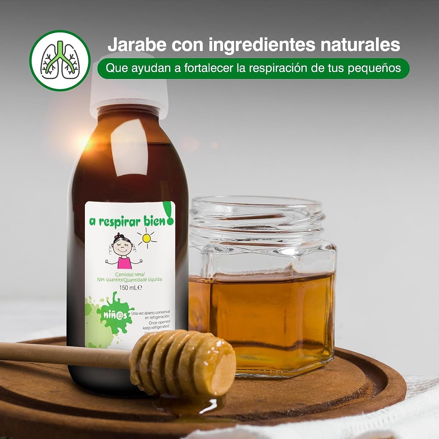 Complemento alimenticio en jarabe infantil que contiene una combinación de ingredientes naturales que contribuyen a aliviar la congestión y facilitar la respiración de los más pequeños de la casa.