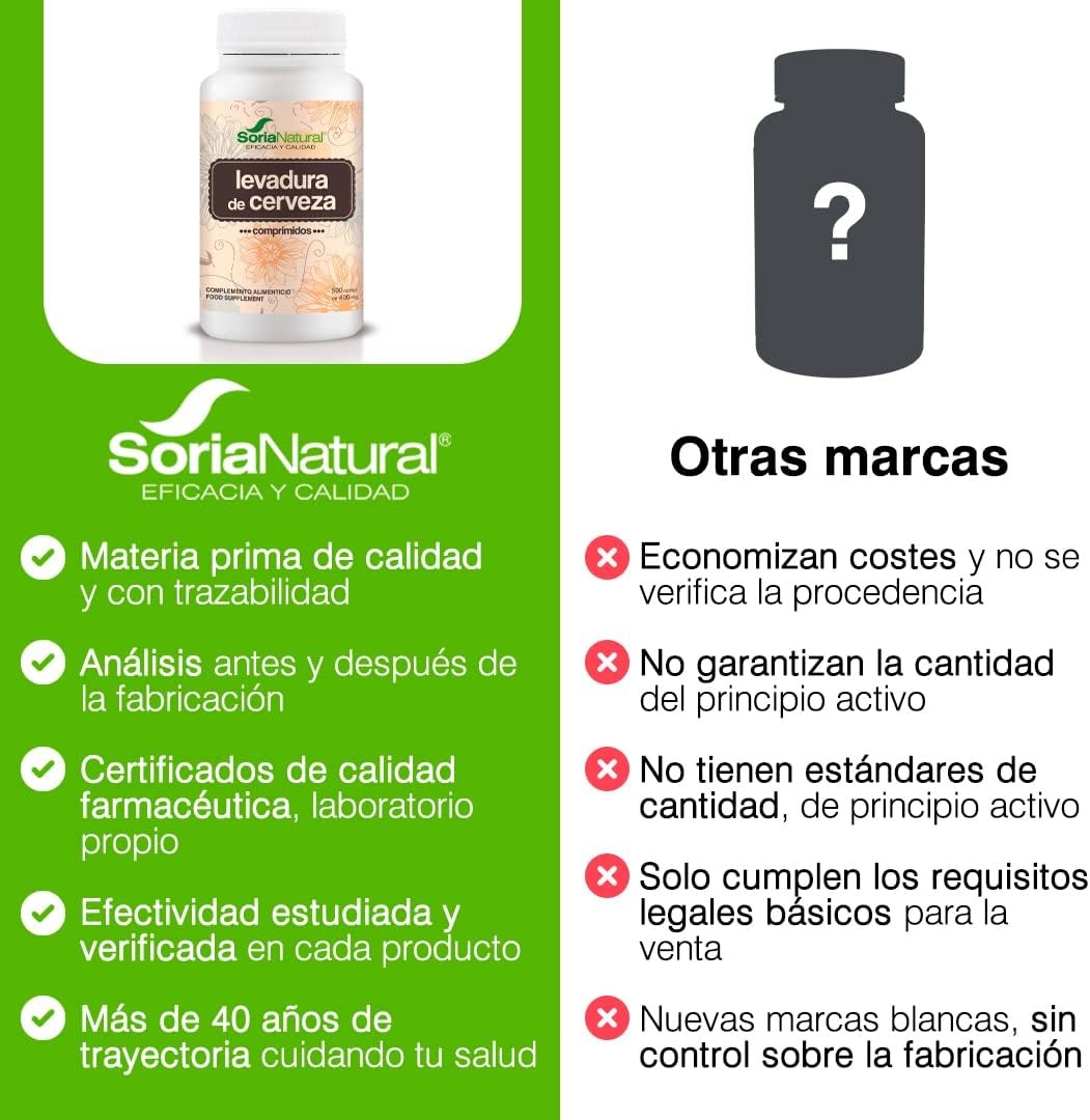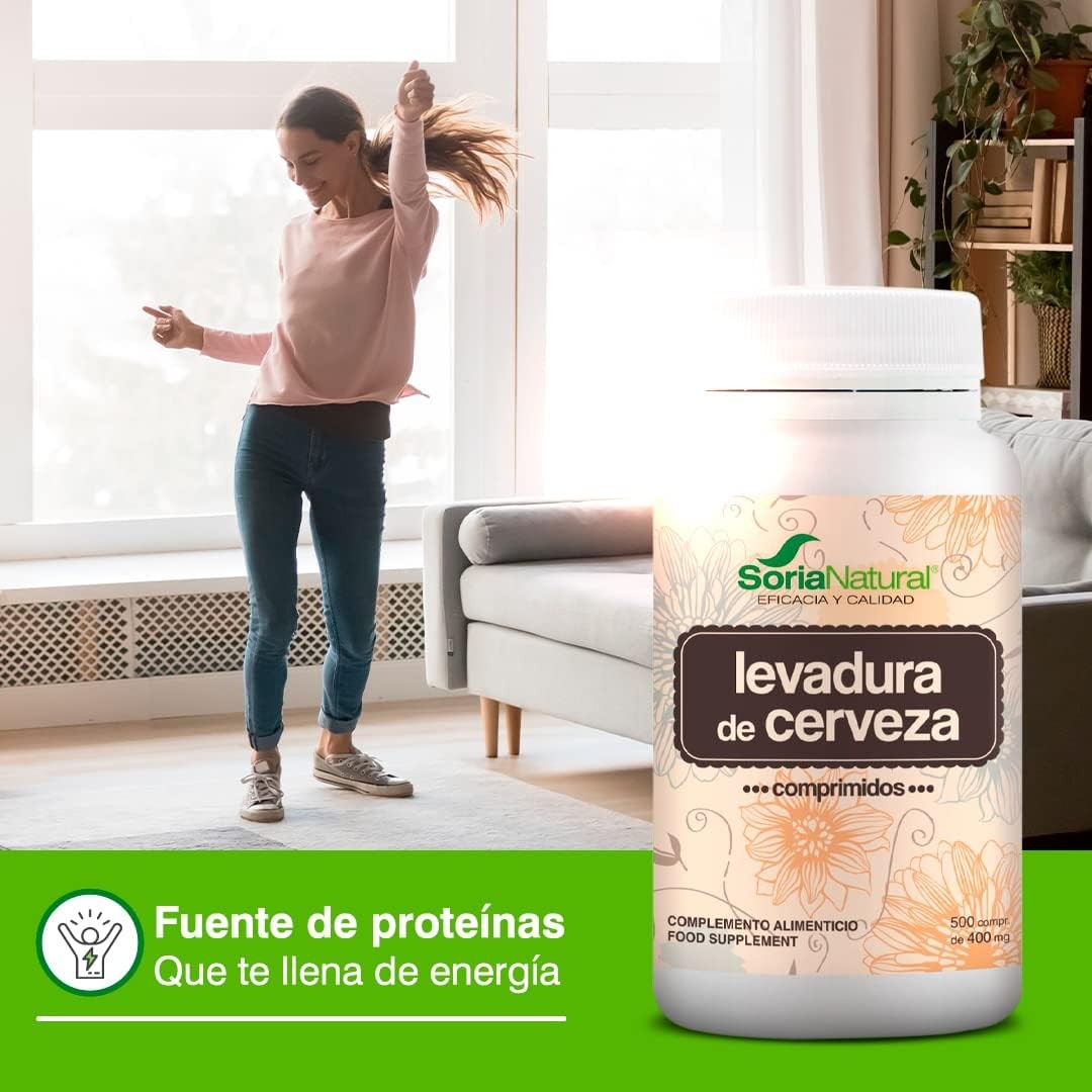 Los comprimidos de levadura de cerveza de Soria Natural son una excelente fuente de vitaminas B, aminoácidos y minerales esenciales para mantener una piel, cabello y uñas saludables, fuertes y brillantes Mejora la Salud Digestiva - La levadura de cerveza contiene probióticos naturales que ayudan a equilibrar la flora intestinal, mejorando así la salud digestiva. Además, ayuda a fortalecer el sistema inmunológico