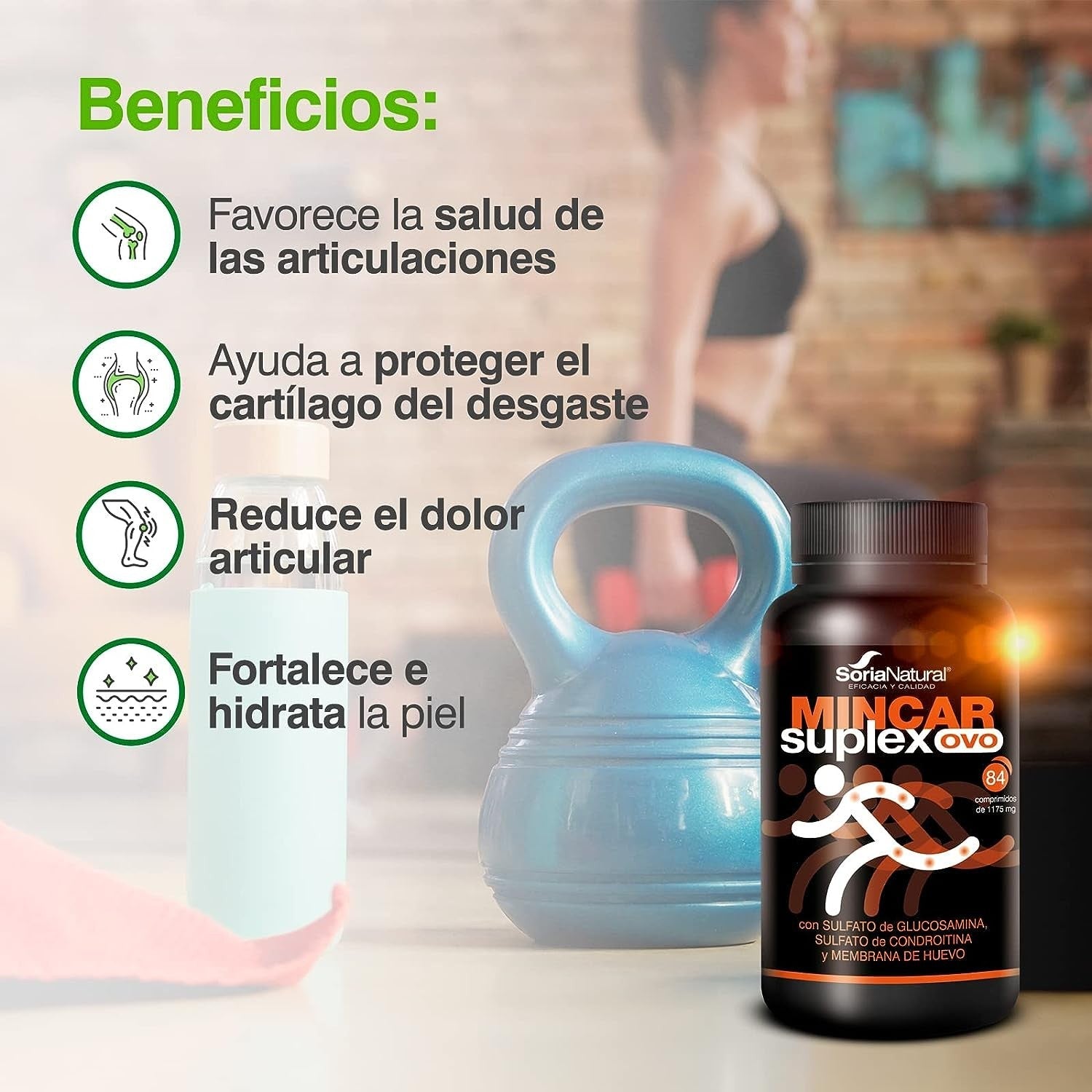 Complemento alimenticio que ayuda a proteger el cartílago y las articulaciones del desgaste.