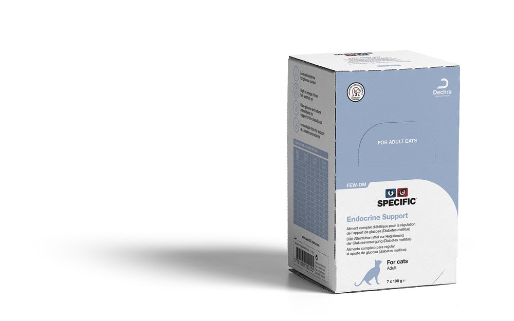 Specific Few-DM Alimento Húmedo para Gatos Adultos 700 gr está formulado específicamente para gatos con diabetes mellitus.