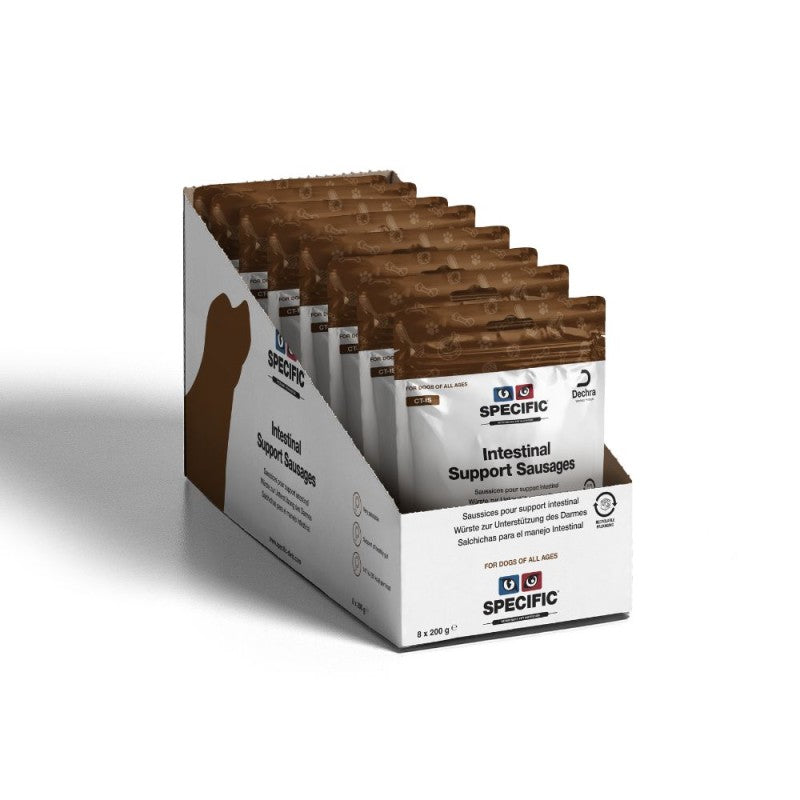 Las Salchichas Intestinal Support de Specific son un delicioso premio para perros de todas las razas y edades, formulado especialmente para aquellos con sensibilidad gastrointestinal.