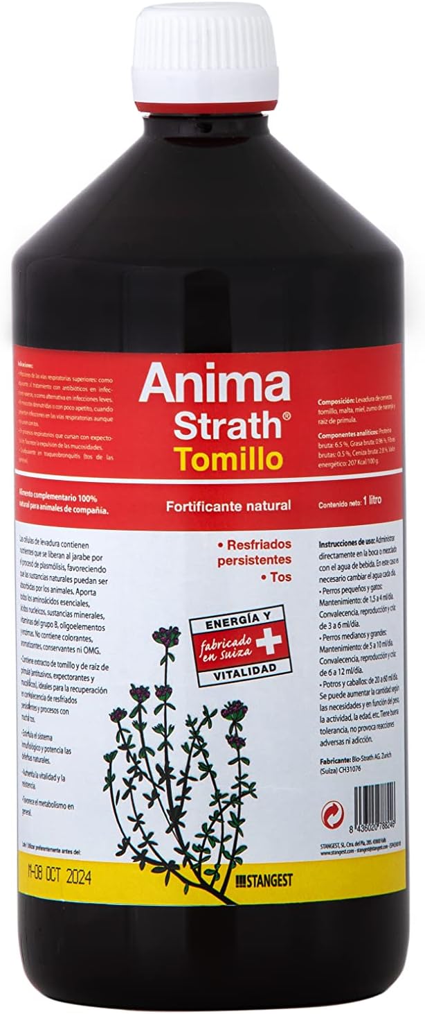 Anima Strath Tomillo de Stangest es un suplemento alimenticio 100 % natural de 1 L, ideal para mejorar la salud de tus mascotas.