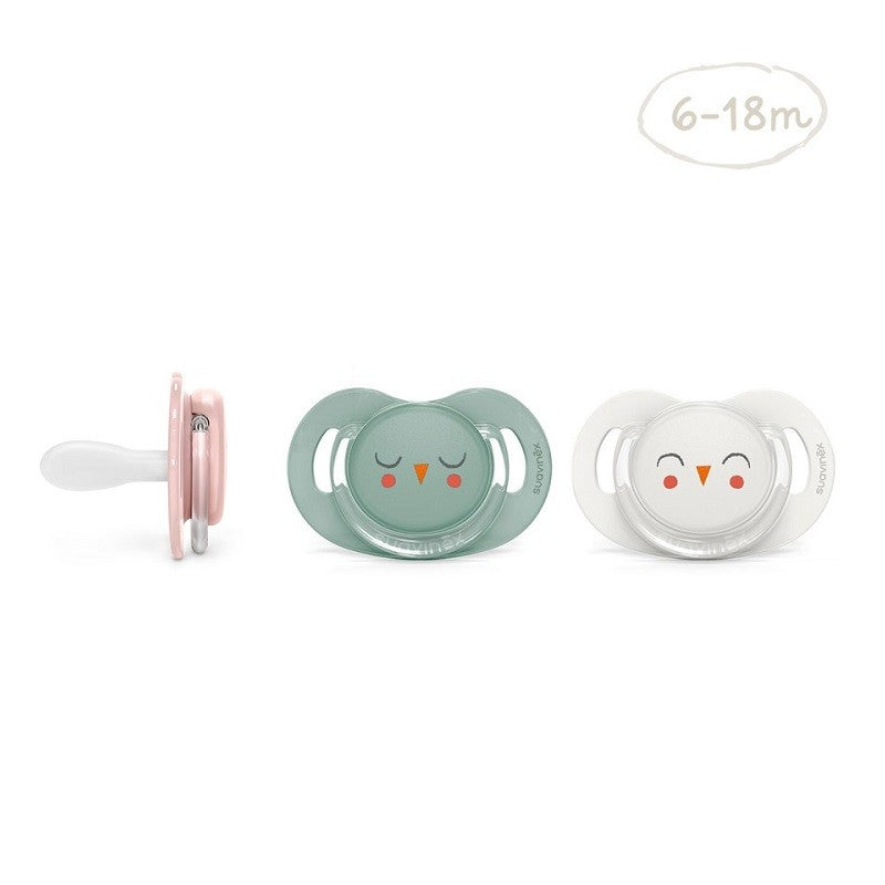 SUAVINEX Chupete Premium Bonhomía Tetina Silicona Fisiológica 6-18 Meses (Búho Verde)