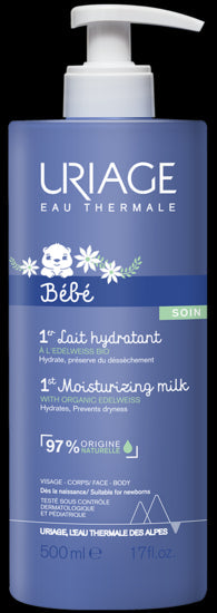 Uriage 1Era Leche Hidratante de 500 ml es perfecta para la delicada piel de los bebés.