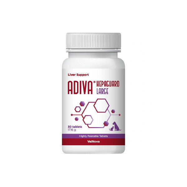 Adiva Hepaguard de Vetnova es un complemento alimenticio ideal para apoyar la salud hepática de perros y gatos.