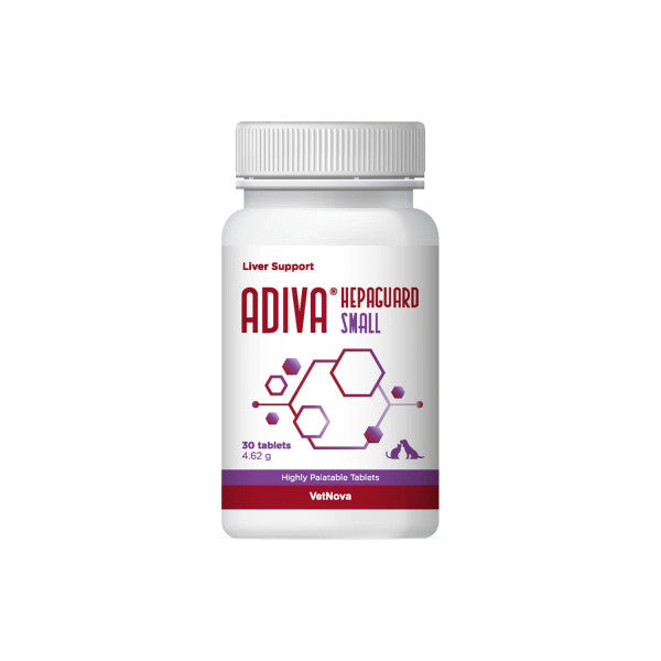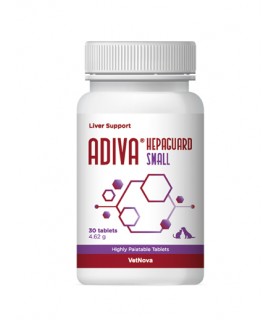Adiva Hepaguard Small de Vetnova es un eficaz complemento alimenticio formulado para fortalecer la función hepática de perros y gatos.