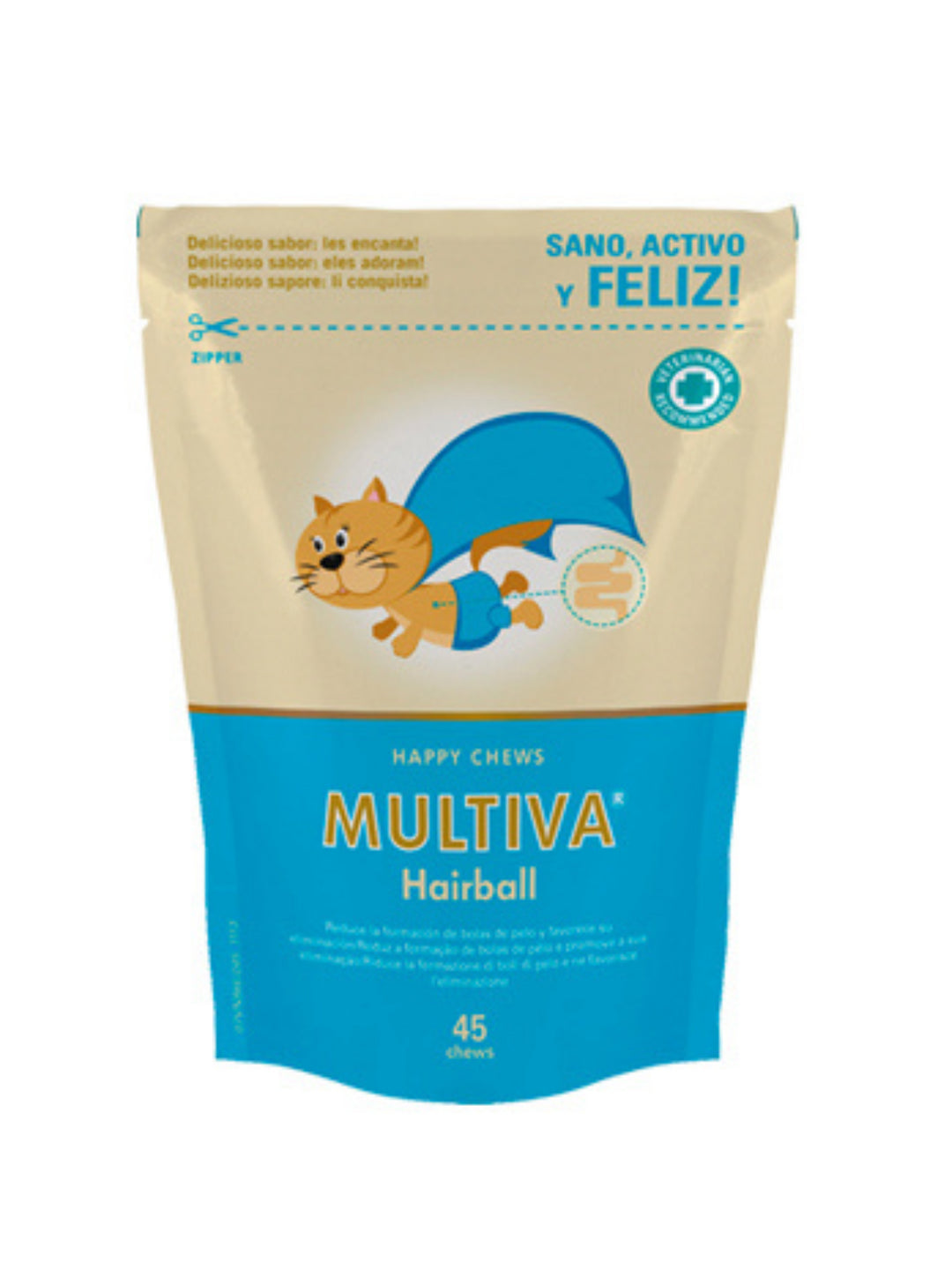 Multiva Hairball Chews de Vetnova en formato de 45 unidades son un complemento nutritivo ideal para gatos.