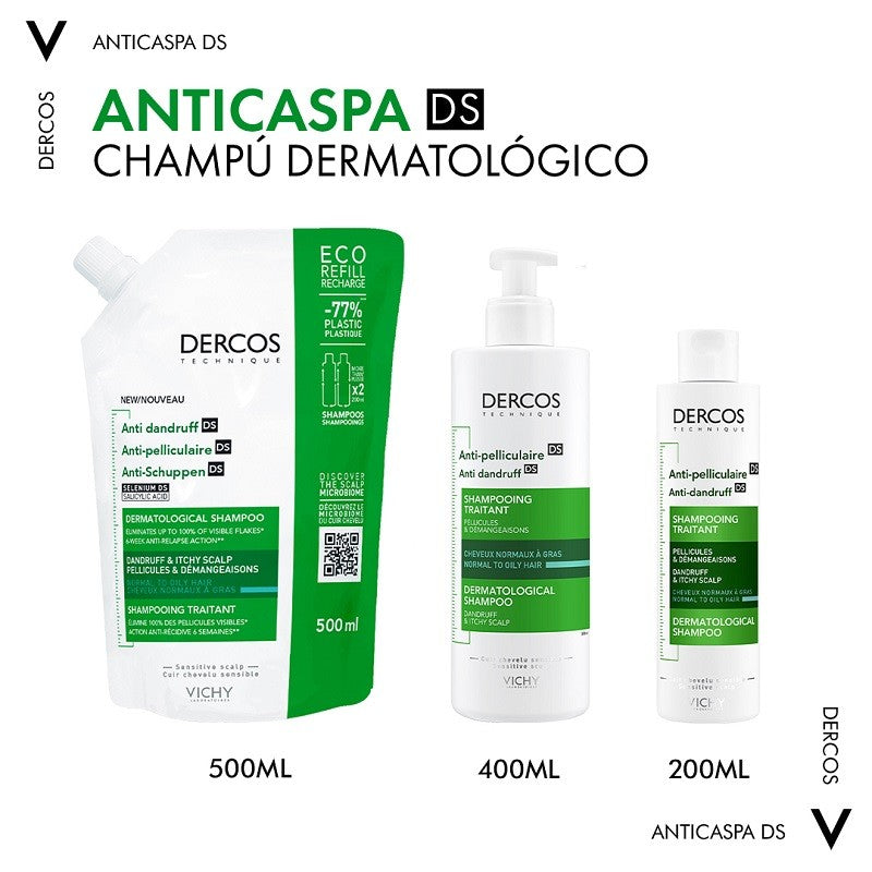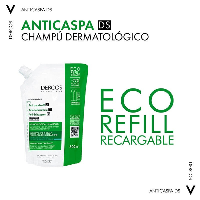 VICHY Dercos Champú Anticaspa Cabello Normal-Graso ECO RECARGA Duplo 2x500ml