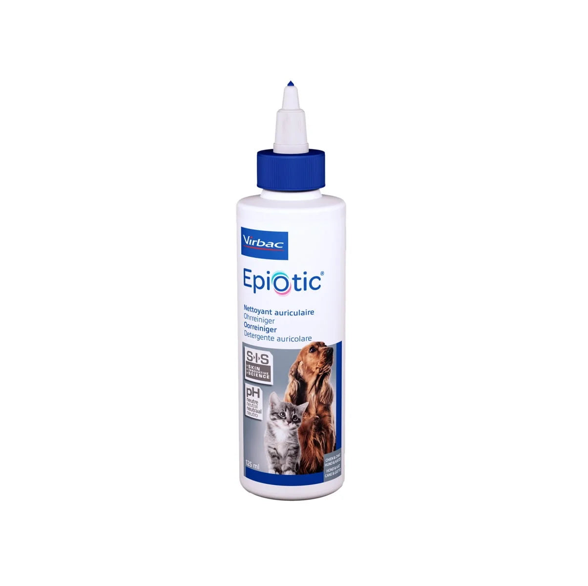 El **Virbac Epi-Otic® Limpiador de Oídos 125 ml** es un producto especializado diseñado para perros y gatos, que elimina de forma efectiva la cerumen, suciedad y bacterias del conducto auditivo.