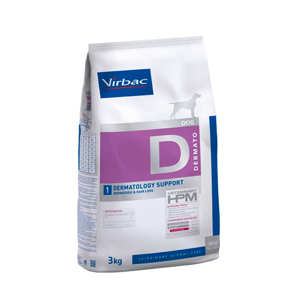 Virbac HPM Canine Dermatology Support D1 es un alimento seco de 3000 g formulado para perros con problemas de piel y pérdida de pelo.