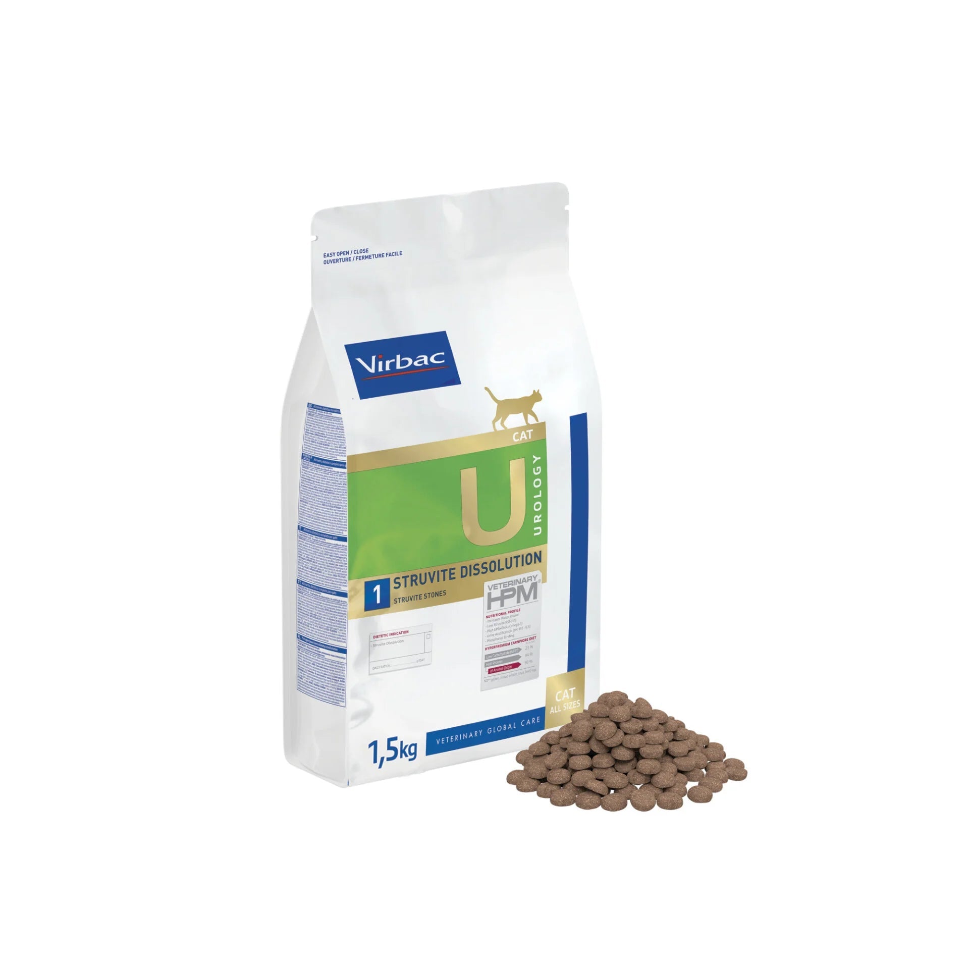 El **Virbac HPM Feline Urology Dissolution Prevention U2** es un alimento seco especial de 1,5 kg, diseñado específicamente para gatos adultos.