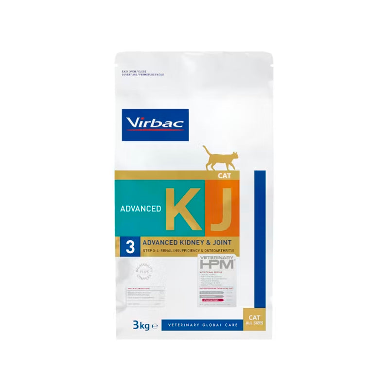 El Virbac HPM Feline Advanced Kidney & Joint es un alimento seco de 3000 g, formulado específicamente para gatos con insuficiencia renal crónica y problemas articulares.