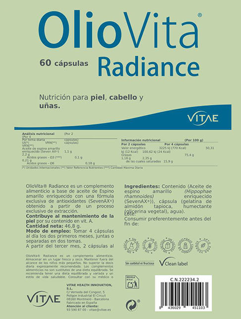 Vitae Oliovita Radiance Complemento Alimenticio 60 cápsulas