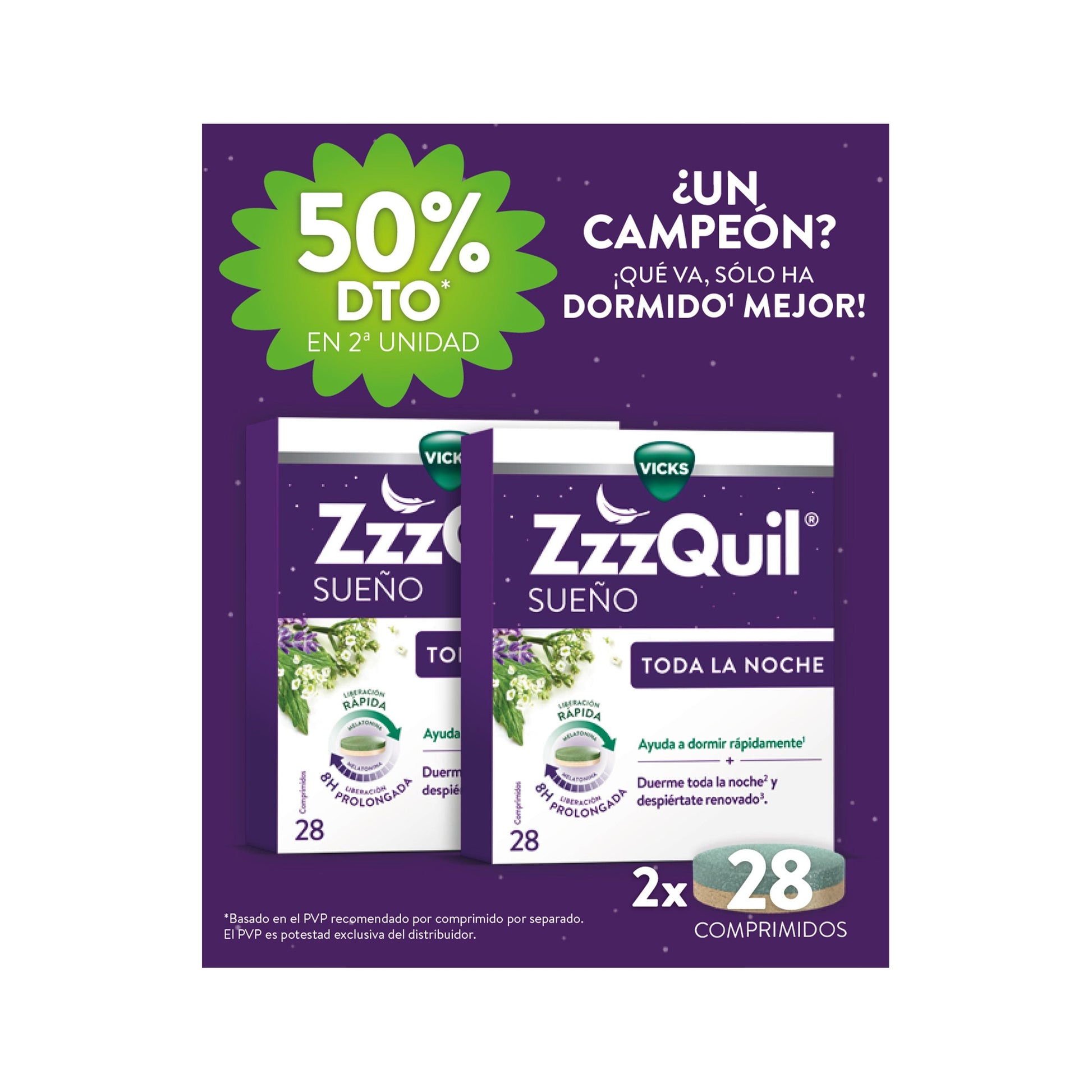 ZzzQuil Toda La Noche 2x28 tabletas es tu aliado perfecto para un sueño reparador.